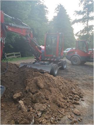 Arbeitseinsatz mit schwerem Gerät: Im Juni 2023 musste die Uferbefestigung für einen Teich erneuert werden