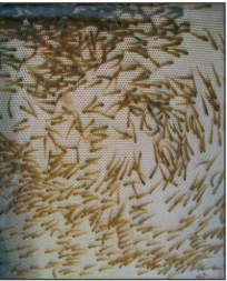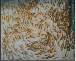 Die Jungfische müssen vom Eistadium bis zum Einsatz in unsere Bäche mindestens zweimal täglich versorgt und kontrolliert werden. Zur Vermeidung von größeren Verlusten müssen die abgestorbenen Eier und toten Brütlinge mit der Pinzette einzeln ausgelesen werden.